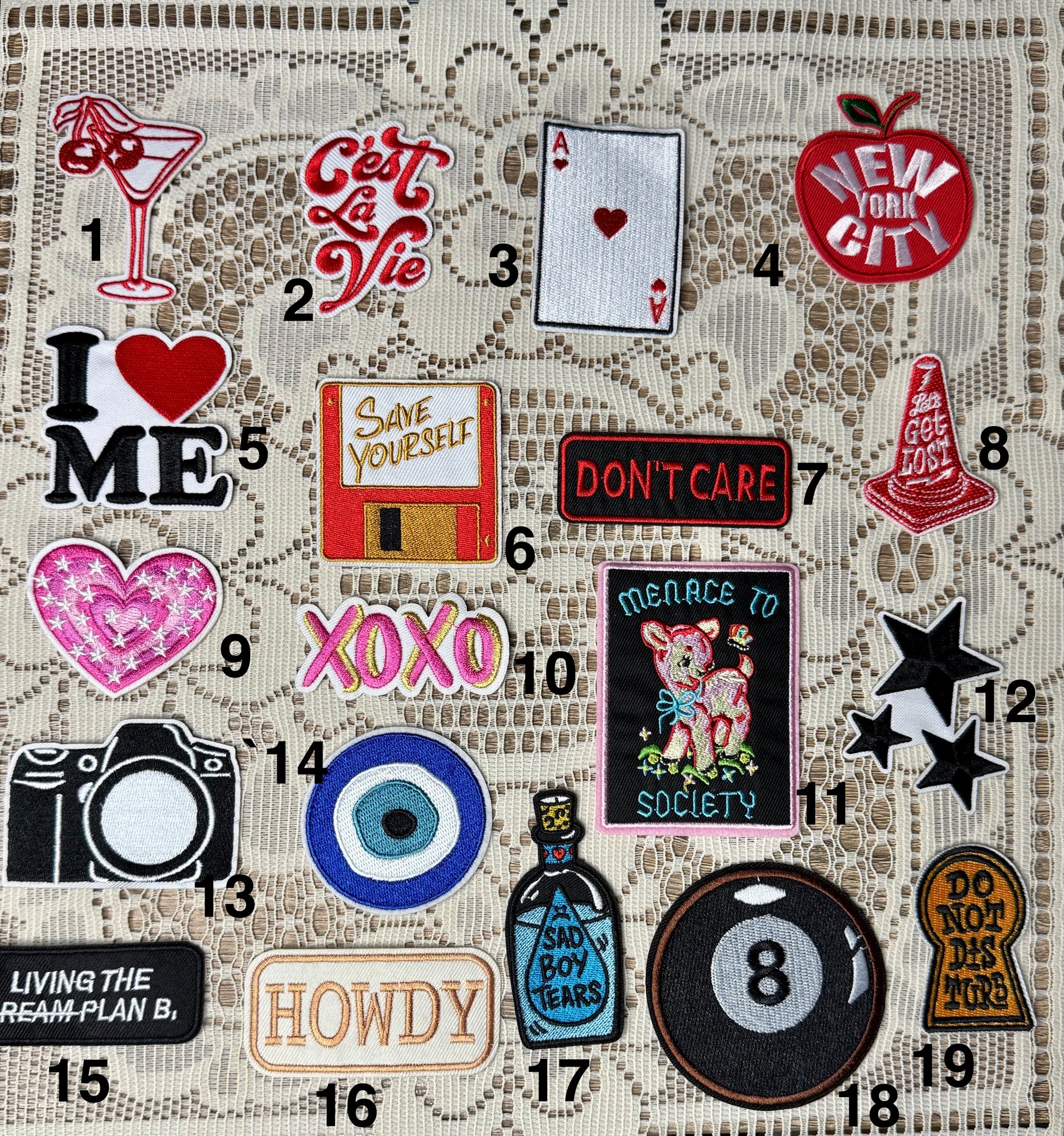 -Please message me for any custom requests, additional sizes and pathces/charms available.